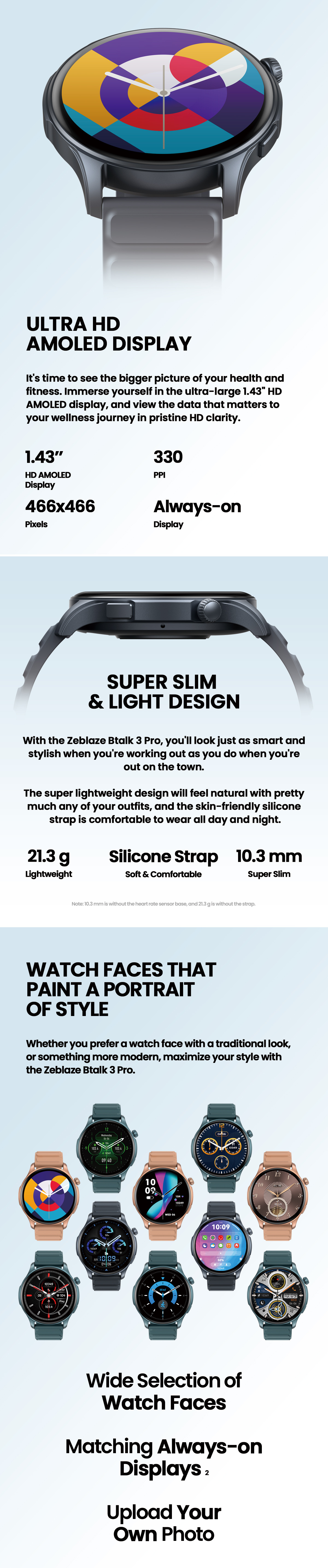 The Zeblaze Btalk 3 Pro Smart Watch is a fantastic device that combines fitness tracking with advanced communication features. This smart watch offers a versatile range of functionalities that make it an essential gadget for those who want to stay connected and healthy. Whether you're a fitness enthusiast or someone who just wants to keep an eye on their health metrics, the Zeblaze Btalk 3 Pro has something for everyone.